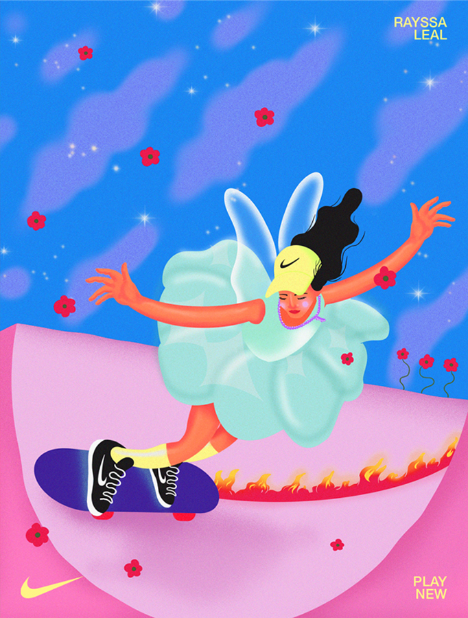 Play News is Nike's new global campaign, and to help bring this inspiring narrative to life, they invited Dialeto to illustrate their new campaign. Our mission was to create illustrations that would transform ordinary athletes into true heroes in an authentic and impactful way. Rayssa Leal, the prodigious young girl who, at a very young age, captivated everyone with her achievements. Due to her young age and talent in skateboarding, she earned the nickname "Fadinha" (Little Fairy). Invited by the Wieden+Kennedy Agency to illustrate Nike's new campaign, our goal was to portray this remarkable athlete in a playful and enchanting manner. We believe that each illustration has become a powerful tool for storytelling and inspiring people around the world.