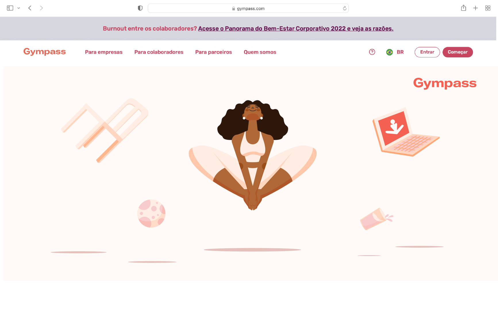 Gympass, an international startup providing access to affiliated gyms, faced the challenge of keeping customers engaged during the pandemic. During this period, the company created a home care utilization system and invited us to develop a series of illustrations to promote this new service. The objective was to demonstrate that customers could continue to use their membership normally and receive personalized assistance from professionals in their homes through video conferencing via the application.